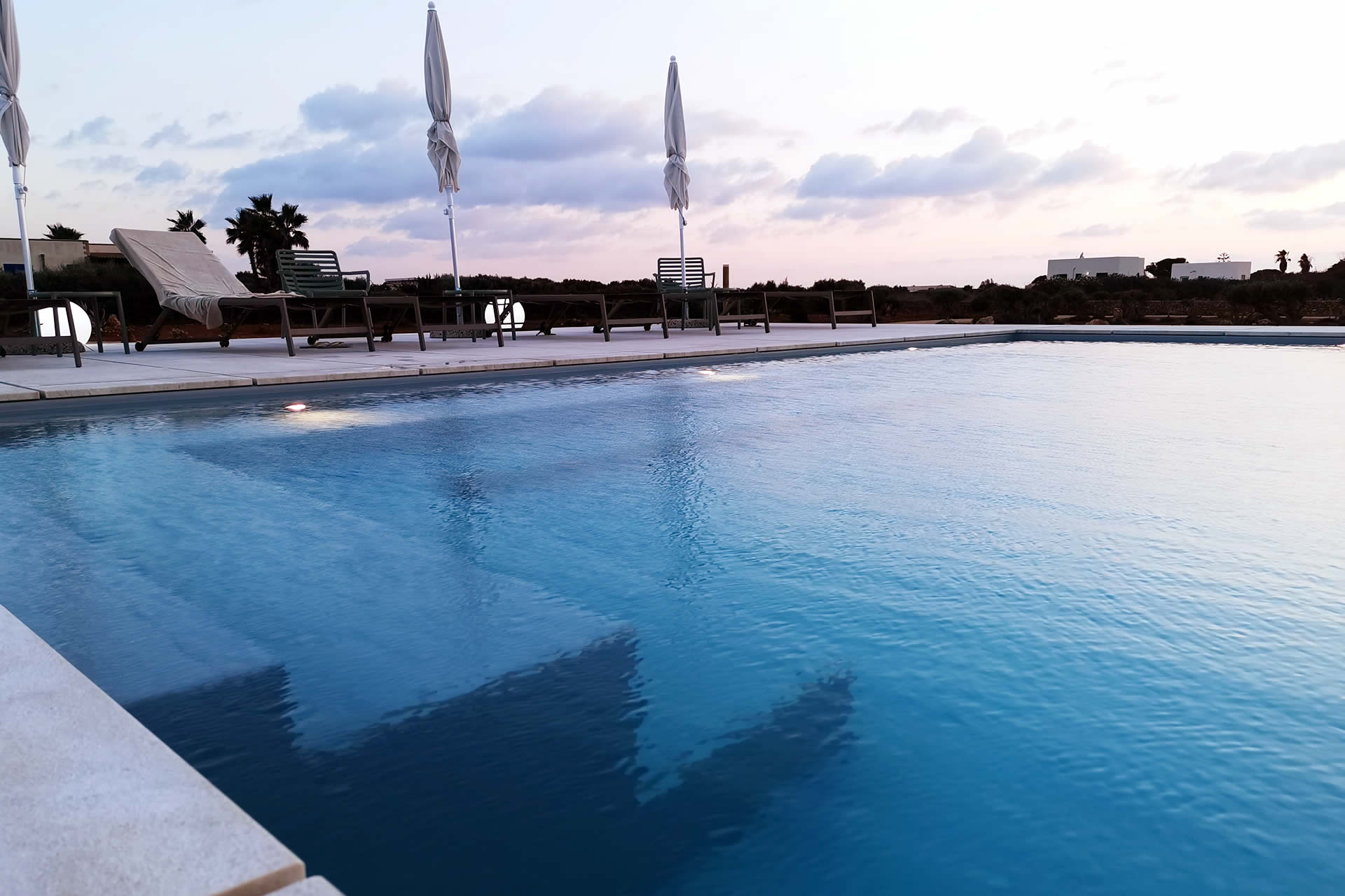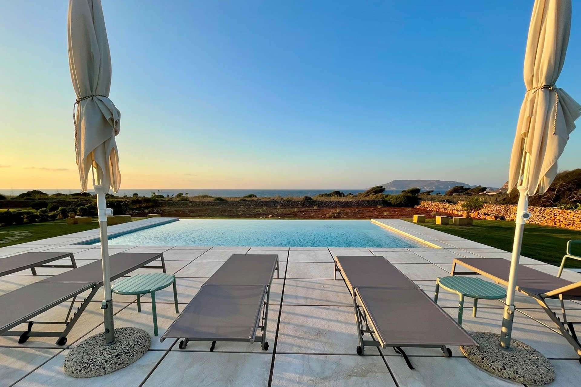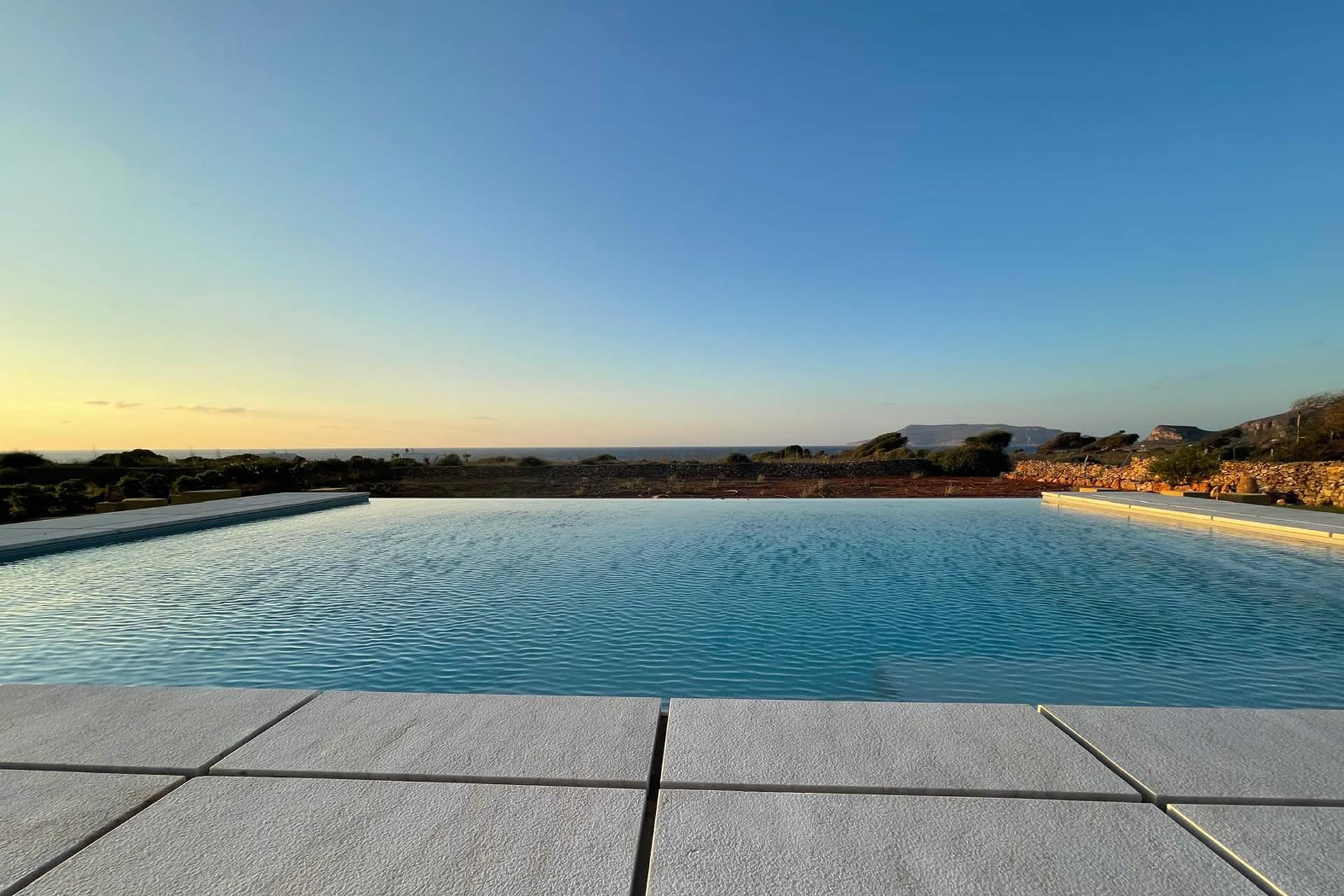 Situata in una posizione privilegiata e dominante, la piscina offre una vista mozzafiato sul mare e sui tramonti più suggestivi dell'arcipelago delle Egadi. Progettata con eleganza e armonia, la piscina a sfioro regala un'esperienza sensoriale unica, dove acqua e cielo si fondono in un solo orizzonte.