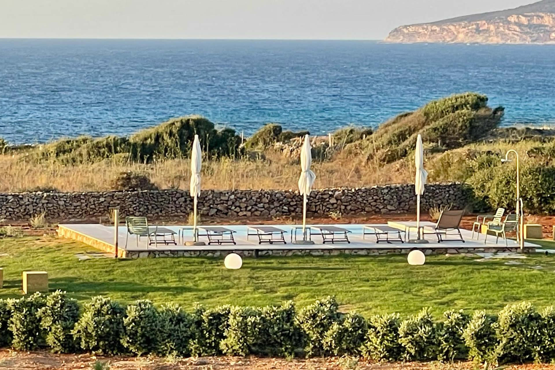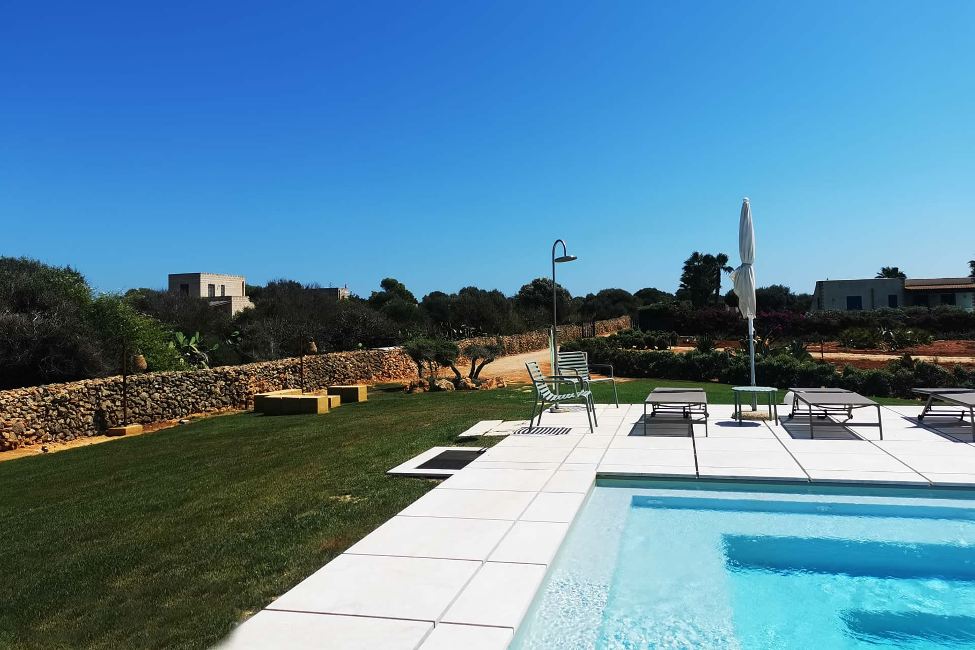 La piscina è condivisa tra tutte le ville di Cala Virdi, garantendo ampi spazi, comfort e una perfetta integrazione con l'ambiente circostante. Che tu voglia nuotare al mattino, rilassarti al sole o goderti un aperitivo al tramonto, qui ogni momento si trasforma in pura bellezza.