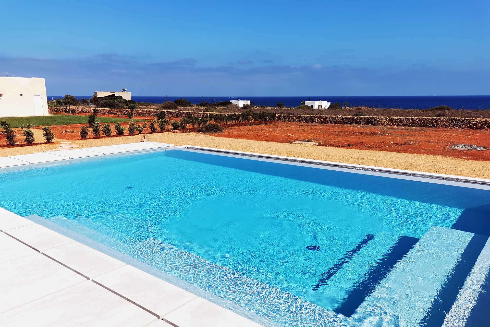 Lasciati incantare dalla piscina a sfioro di Villa Carrubo a Favignana, un autentico angolo di relax immerso nella natura e affacciato sullo straordinario scenario delle isole di Levanzo e Marettimo.